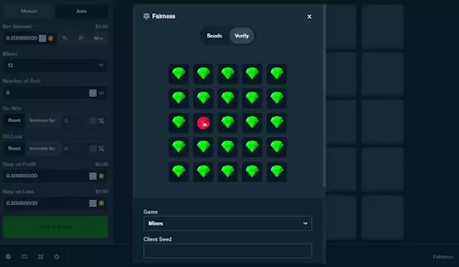 One of the strongest parts of the Stake version is the way Mines fits into the platform’s provably fair system.